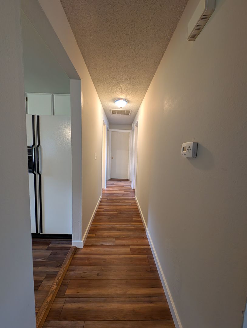 This inviting rambler has been thoughtfully refreshed from top to bottom, featuring all‑new flooring and paint throughout for a clean, modern feel the moment you step inside. The layout offers comfortable bedroom spaces plus a bonus den space — perfect for a home office, cozy media room, or creative retreat. A convenient half bath with storage space sits just off the den, while the primary bedroom connects directly to the main bathroom, creating an easy, functional flow.